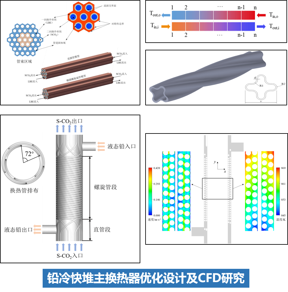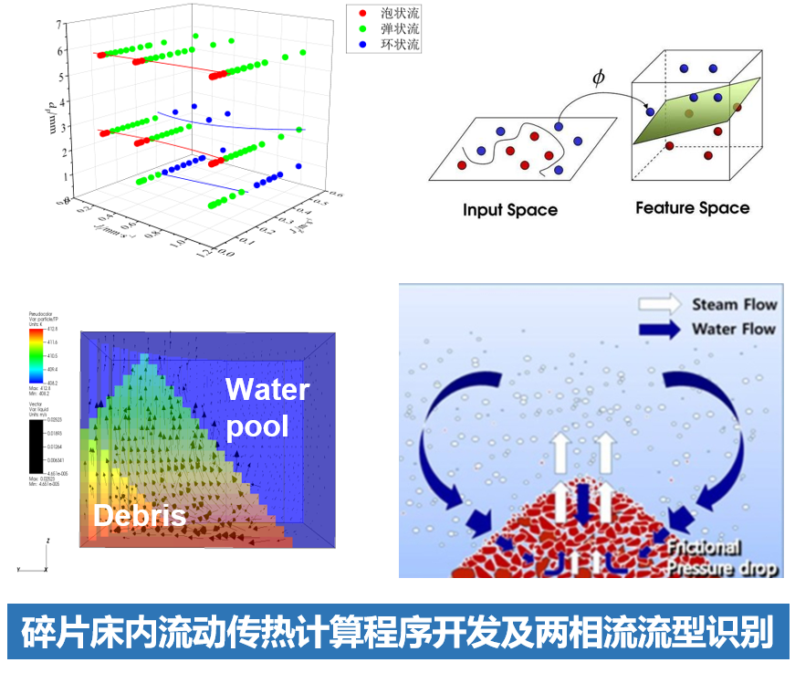 在机器学习方法和数字孪生技术的支持下,扎根先进反应堆热工水力的难点痛点,建立了铅冷快堆主泵数字孪生平台、严重事故碎片床多孔流型识别,铅冷快堆主换热器设计优化,为先进核反应堆的快速响应,实时监测与多目标优化提供参考。