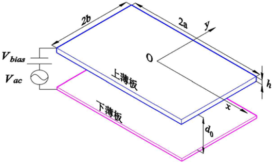 针对CMUT的结构特点,利用伽辽金法分别建立了圆形和矩形薄膜CMUT的机电耦合模型,得到了CMUT薄膜静态变形与偏置电压、结构参数之间的函数关系,并建立了CMUT的塌陷电压分析表达式。对于CMUT的动力学性能,分别利用能量等效法和伽辽金法建立了圆形和矩形薄膜CMUT在偏置电压作用下的谐振频率分析表达式。以上成果在Journal of physics D: Applied Physics、Instrumentation、IEEE/ASME Journal of Microelectromechanical Systems、journal of Micromechanics and Microengineering、AIP Advances等期刊上发表。