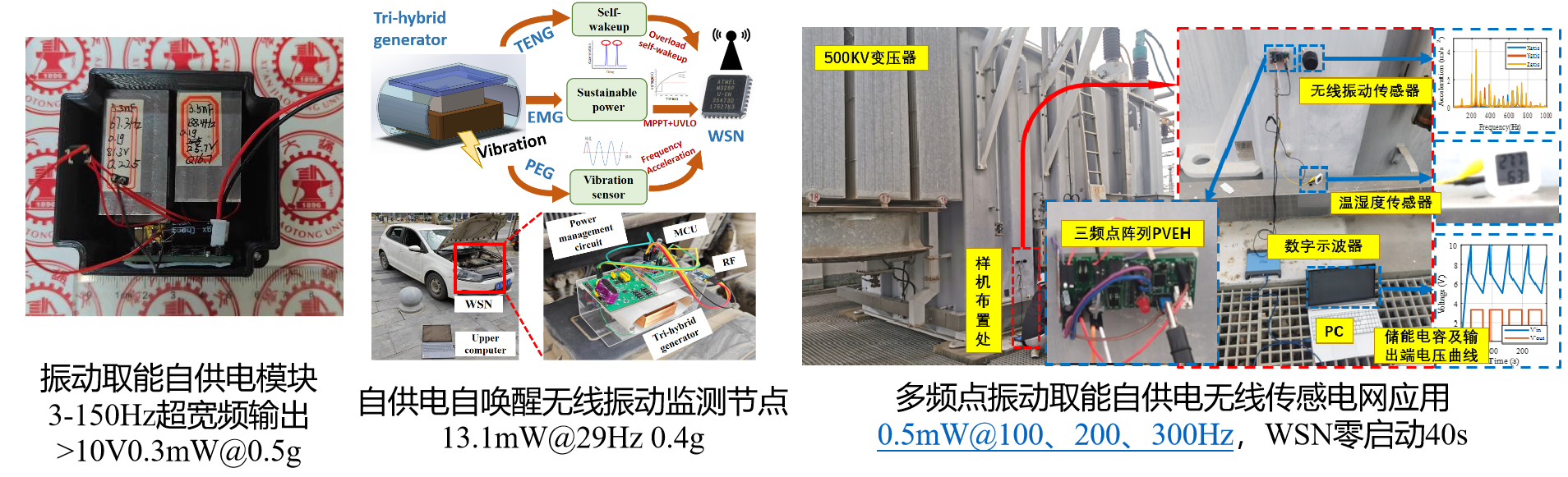 课题组振动能量收集及自供电传感技术方向,致力于机电耦合非线性振动理论分析、压电、电磁、摩擦电振动能量收集器设计及制造,摩擦电振动传感器设计及制造,自供电电源管理设计,低功耗无线节点开发和自供电物联网应用等核心关键技术研究。