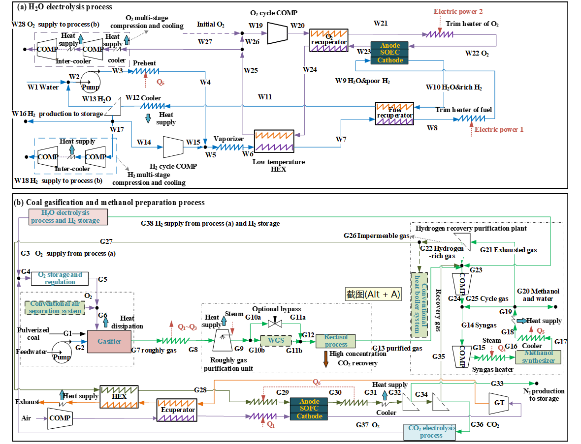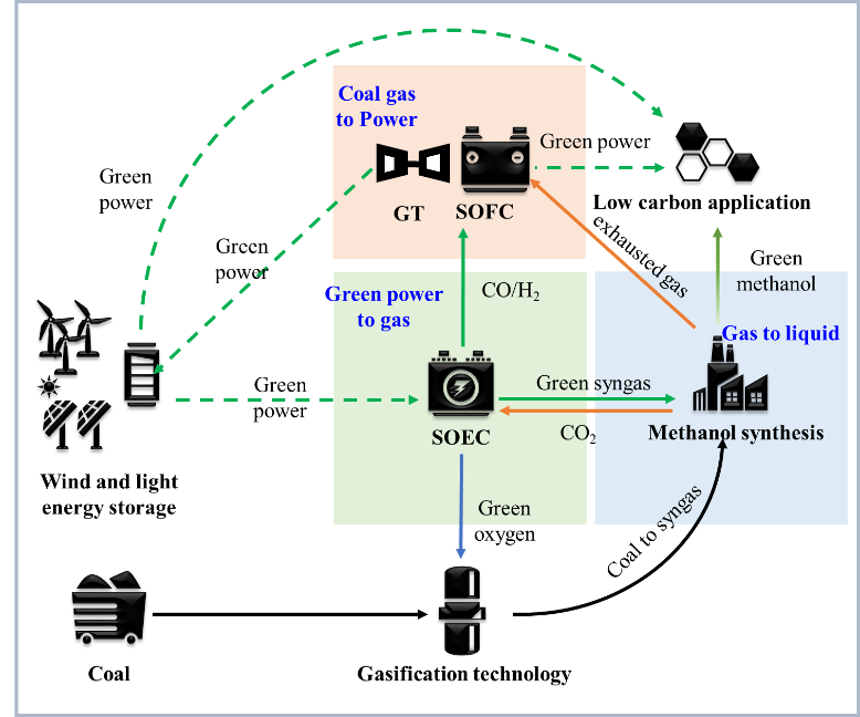 论文引用:Sun S, Li Z, Yuan B, Sima Y, Dai Y, Wang W, et al. A new pathway to integrate novel coal-to-methanol system with solid oxide fuel cell and electrolysis cell. Energy. 2024;304.