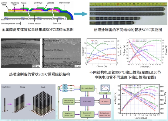 西安交大历经20余年的研究,在国家自然基金、陕西省工业攻关项目、863项目、973项目和国家重点研发计划等项目的资助下,掌握了从SOFC电池与电堆的关键材料合成、自主电池结构设计、核心制备技术。确立了适用于分布式热电联供的竹节式管式SOFC单管电池及电堆结构与制备方法,确立了面向车载可快速启动的金属支撑自密封SOFC结构与制备方法,具有完全自主产权。