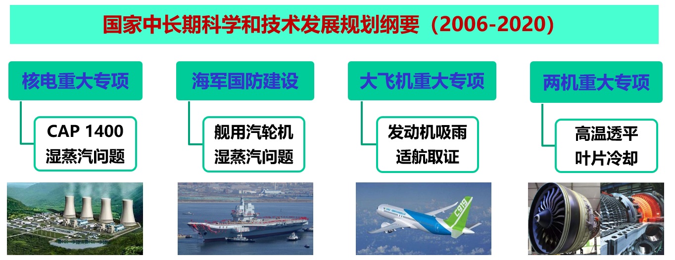 紧密跟踪核电重大专项、海军国防建设、大飞机重大专项、两机重大专项等国家重大需求,开展高温透平叶片冷却技术、叶轮机械气液两相流等方面的研究。