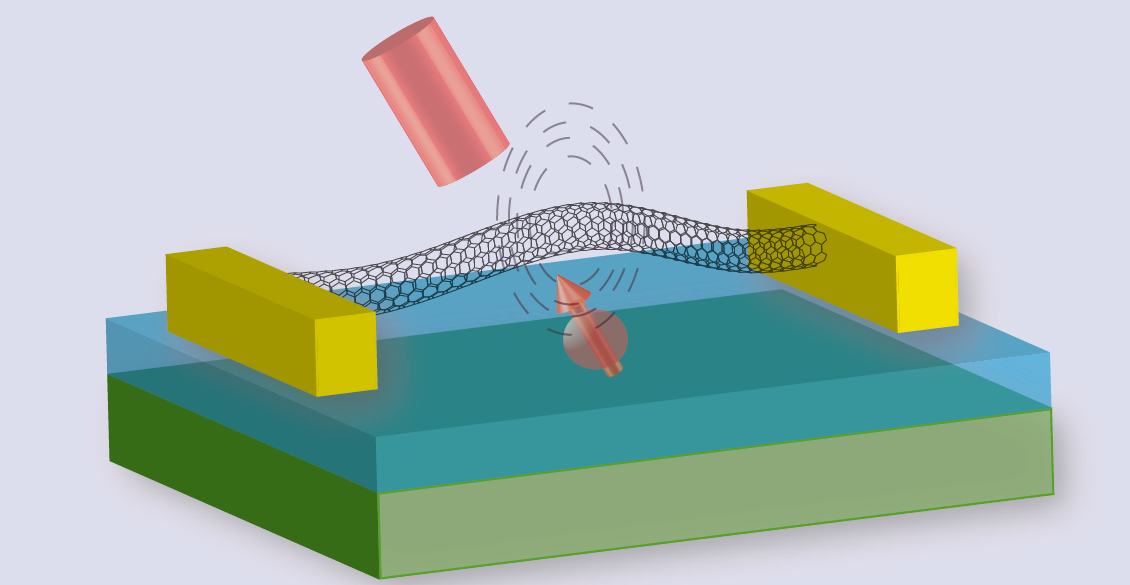单NV center和载流碳纳米管机械振子构成的混合量子器件示意图