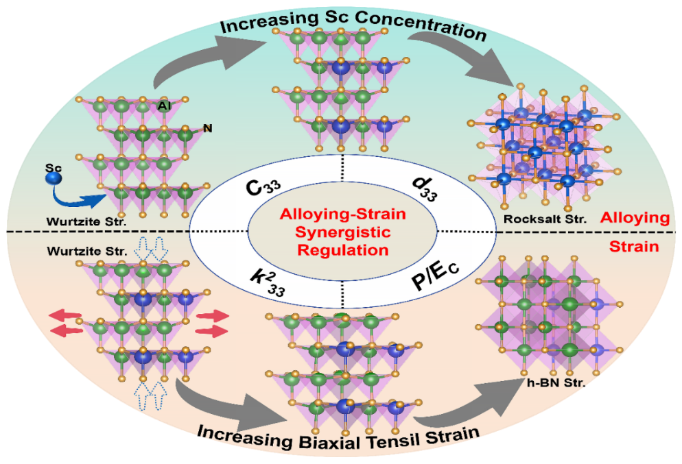 图1 合金化和应变工程协同调控AlScN性能的示意图