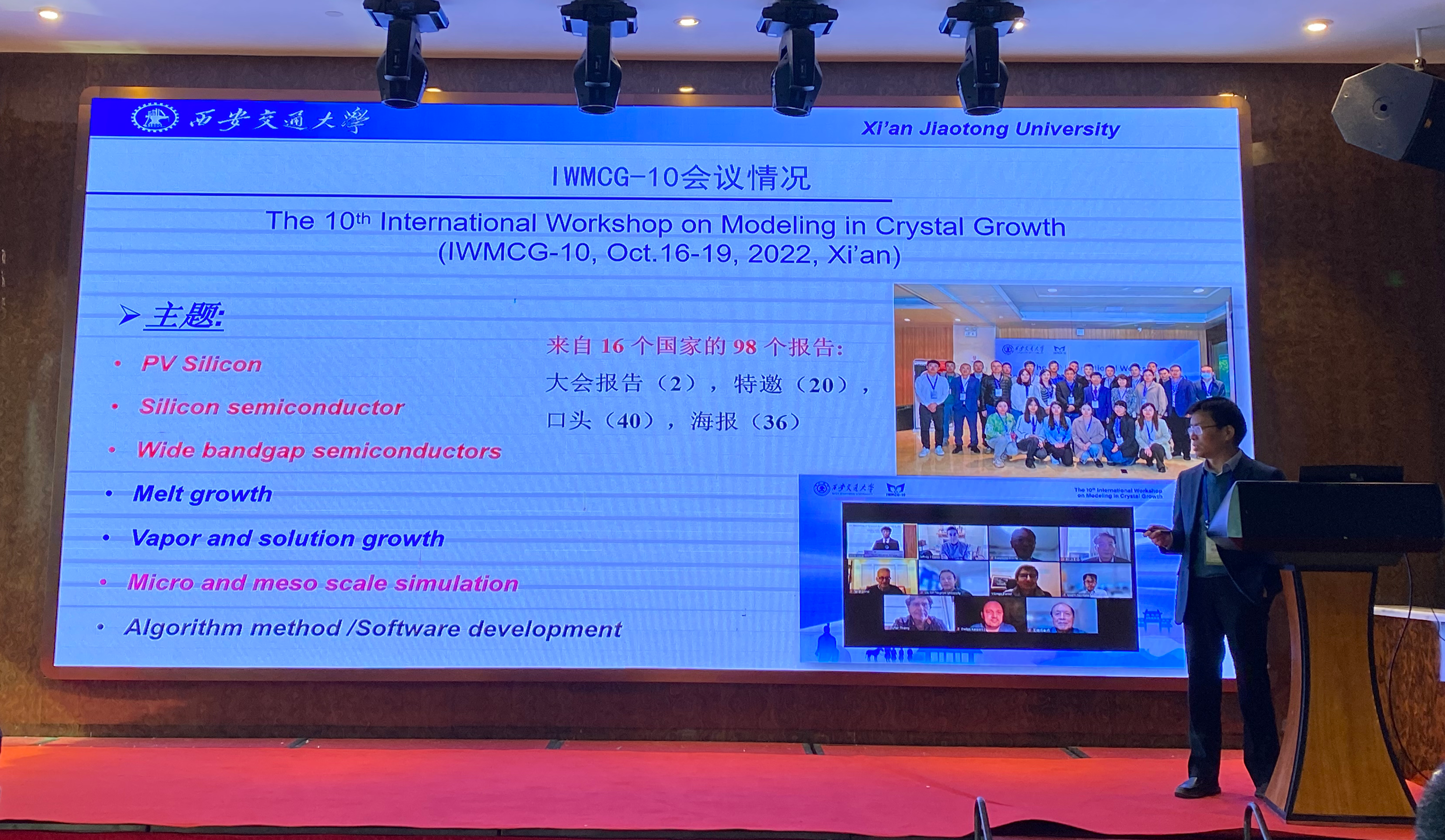 刘立军老师在4月9日上午受邀为广大参会人员分享了我组于2022年10月16日-19日举办的IWMCG-10会议情况和主题为 “晶体生长模拟的研究进展”的报告。