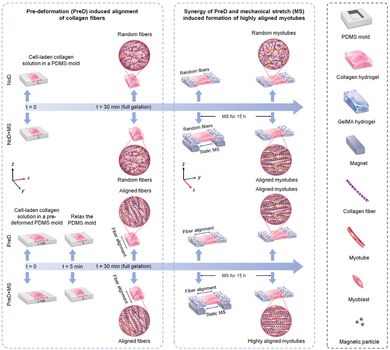 [3] Shi N#, Li Y#, Chang L, Zhao G, Jin G, Lyu Y, Genin G, Ma Y*, Xu F*. A 3D, Magnetically Actuated, Aligned Collagen Fiber Hydrogel Platform Recapitulates Physical Microenvironment of Myoblasts for Enhancing Myogenesis, Small Methods 2021, 5, 2100276. Link