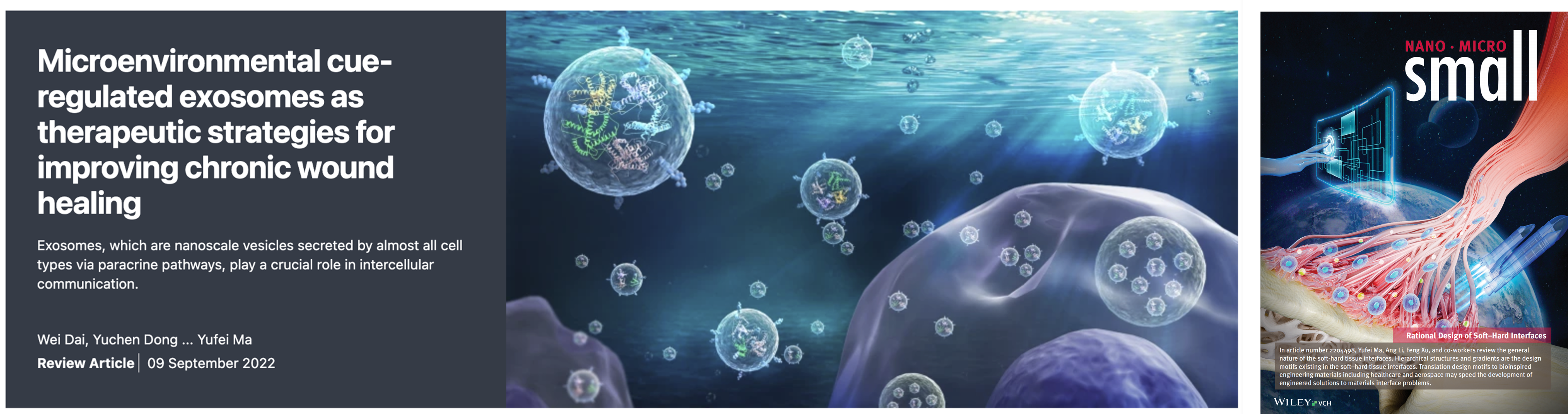 [2] Dai W, Dong Y, Han T, Wang J, Gao B, Guo H, Xu F*, Li J*, Ma Y*. Microenvironmental cue-regulated exosomes astherapeutic strategies for improving chronicwound healing, NPG Asia Materials 2022, 14, 75. Link