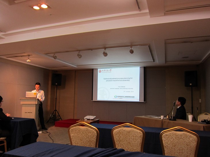 • 2014年9月30日到2013年10月2日期间,在韩国济州岛参加由韩国制造技术工程师协会承办(Korean Society of Manufacturing Technology Engineers,KSMTE)组织的2014国际制造技术工程师会议(ICMTE 2014 2014 International Conference of Manufacturing Technology Engineers),宣读论文《Optimal adjustment process planning for precision machine tool assembly》(《精密机床装配过程最优调整方案规划》),并展示了课题组研究成果。