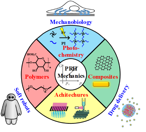 光响应水凝胶(PRHs)是一类新兴的软材料,其力学特性可以在光照条件下进行时空编程。它们的亲水性聚合物网络交联或降解为光敏组分被激活。这篇综述的重点是模型和设计原则,使PRH在力学生物学等方面的应用,并强调了在力学建模和应用方面的持续挑战。