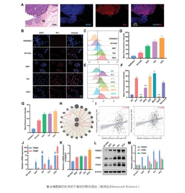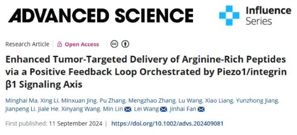 2024年9月11日,西安交通大学范晋海、林敏、空军军医大学王磊共同通讯在Advanced Science 在线发表题为“Enhanced Tumor-Targeted Delivery of Arginine-Rich Peptides via a Positive Feedback Loop Orchestrated by Piezo1/integrin β1 Signaling Axis”的研究论文。该研究合成了十一碳精氨酸肽(R11)用于膀胱癌(BC)的靶向递送,研究了靶向效率并阐明了肽类递送的机制,旨在改进肽类疗法的设计和功效。