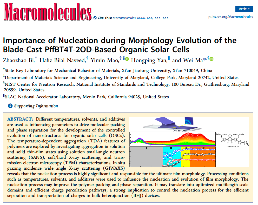 毕召召同学在有机半导体材料原位加工形貌演化发表论文