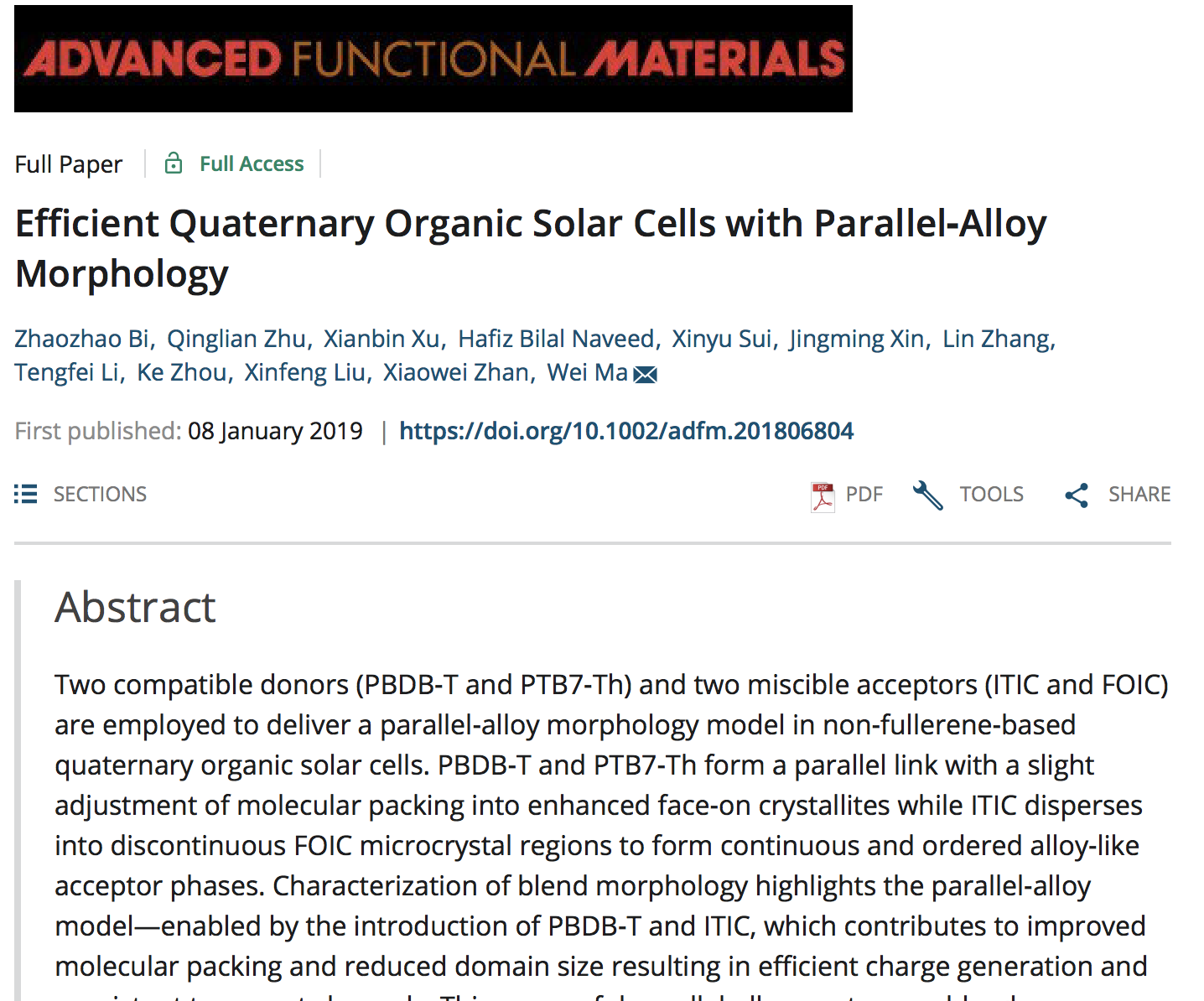 祝贺毕召召同学发表高效四元太阳电池复杂形貌工作《Adv. Func. Mater.》
