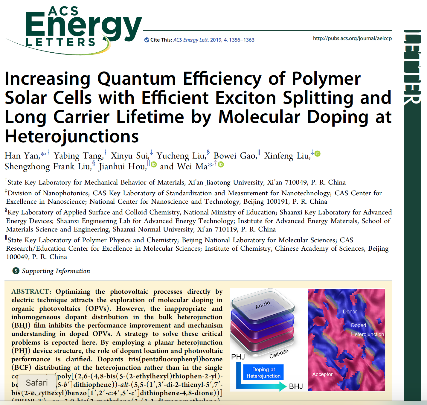 祝贺闫晗老师界面掺杂的工作发表在《ACS Energy Letters》
