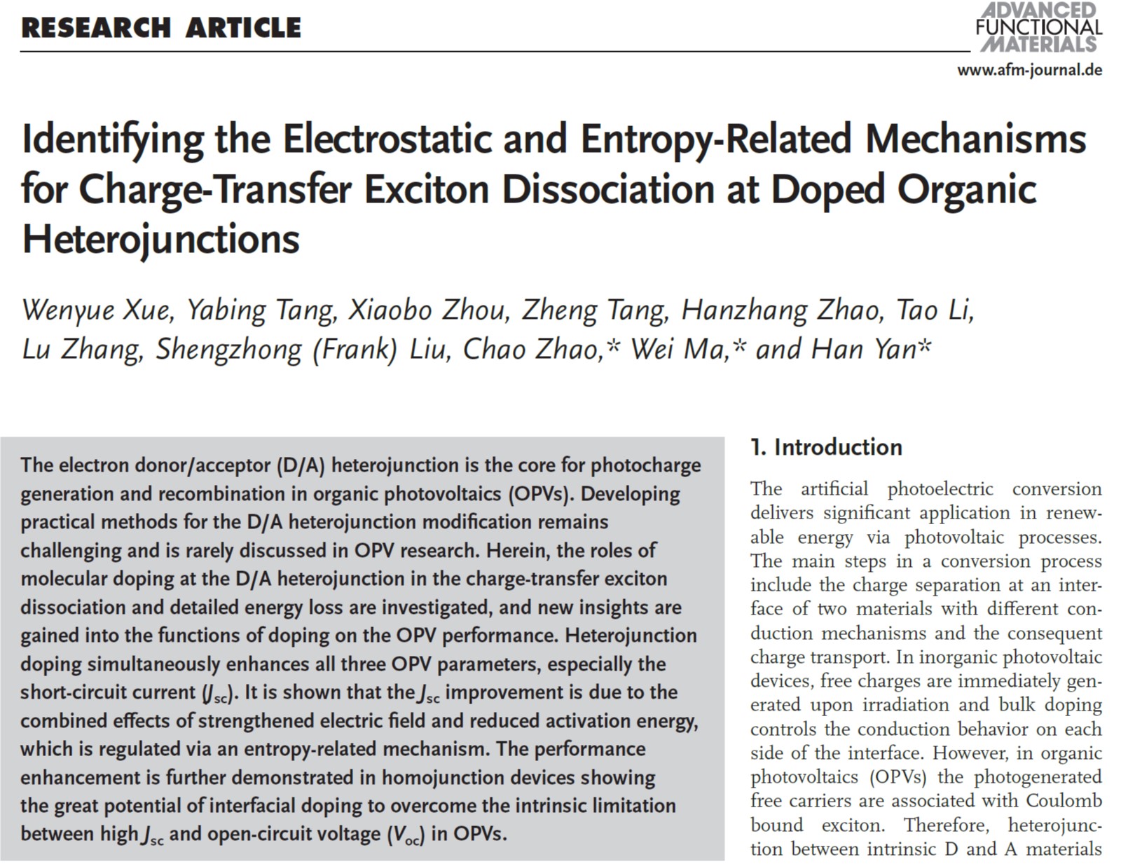 文章标题:异质结掺杂熵机制文章在Adv. Funct. Mater.上发表
