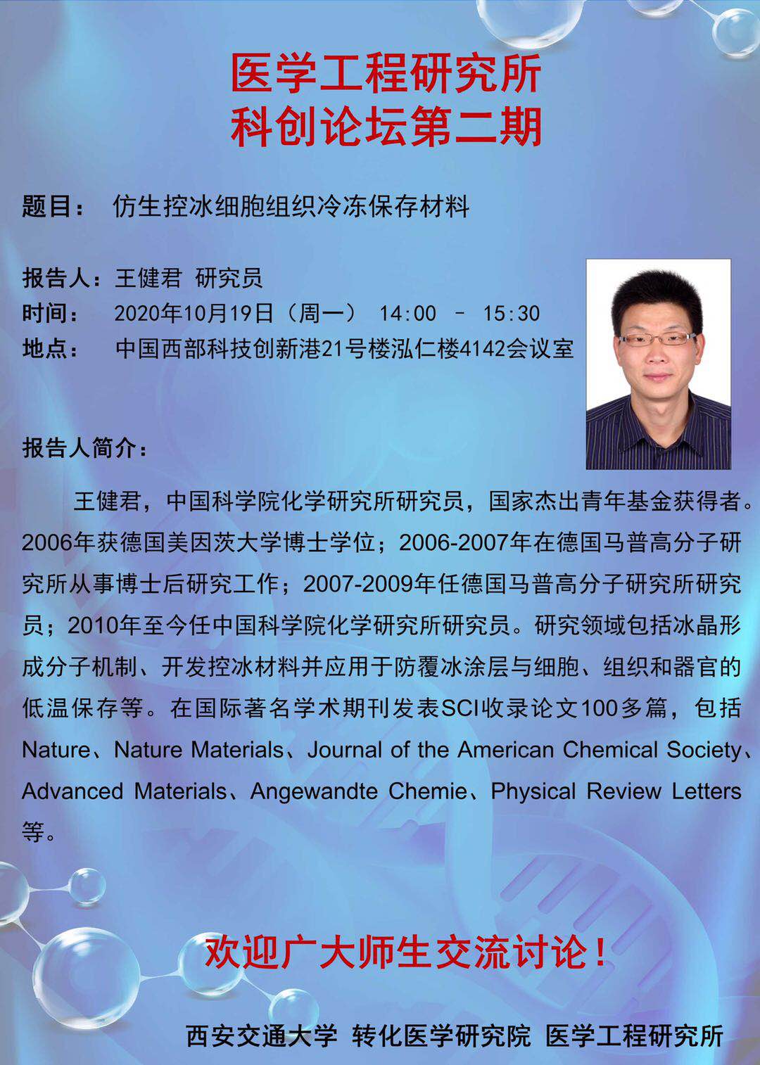 医工所科创论坛第二期:仿生控冰细胞组织冷冻保存材料