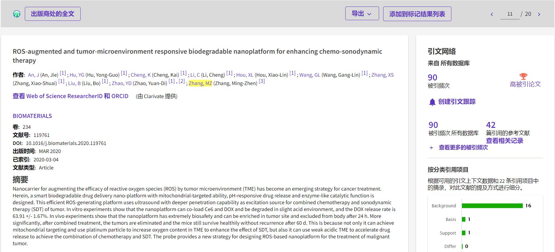 恭喜课题组Biomaterials (2020)入选ESI高被引论文!