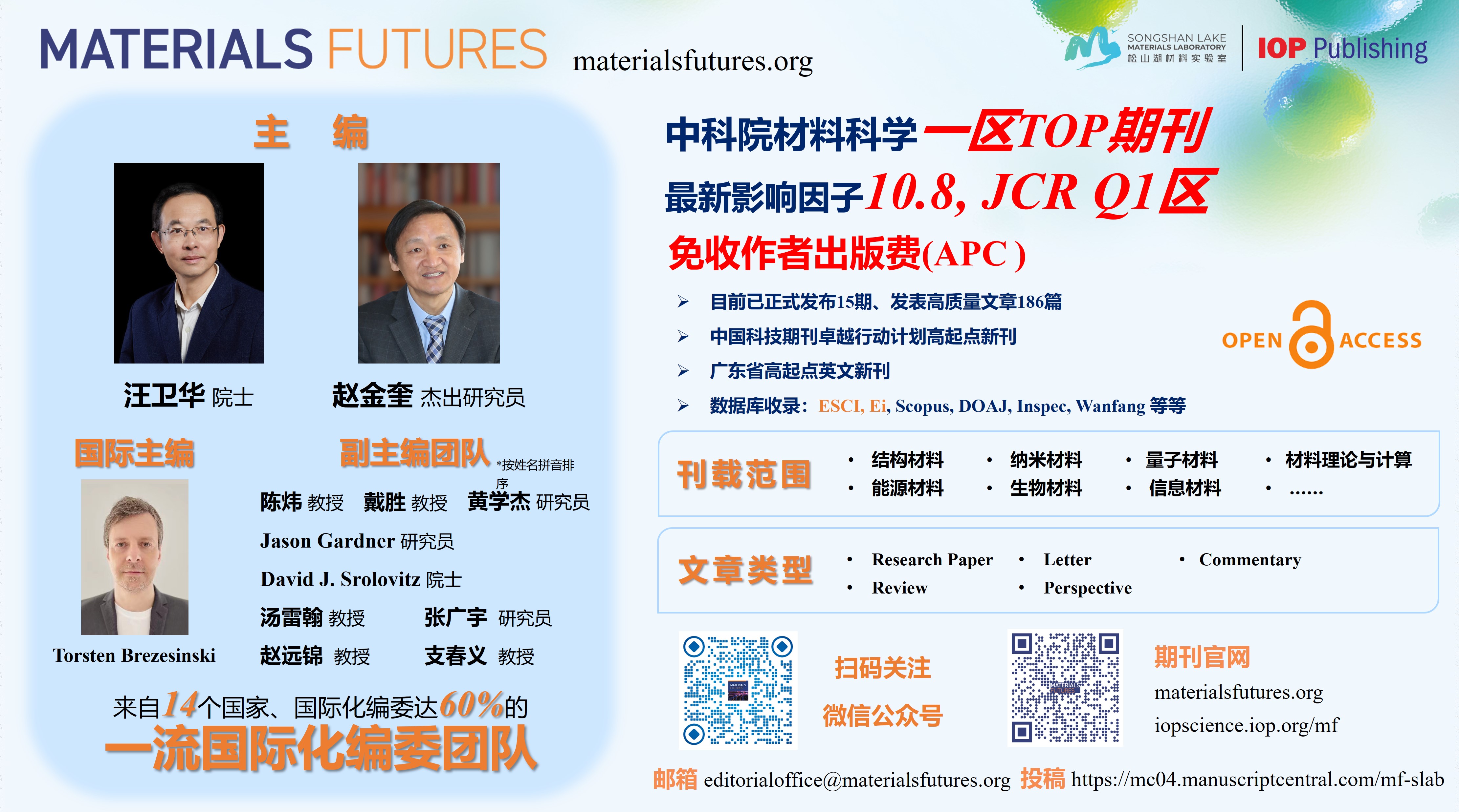 - 热烈祝贺徐攀老师入选中科院材料科学一区TOP期刊Materials Futures(JCR Q1, IF: 10.8)青年编委