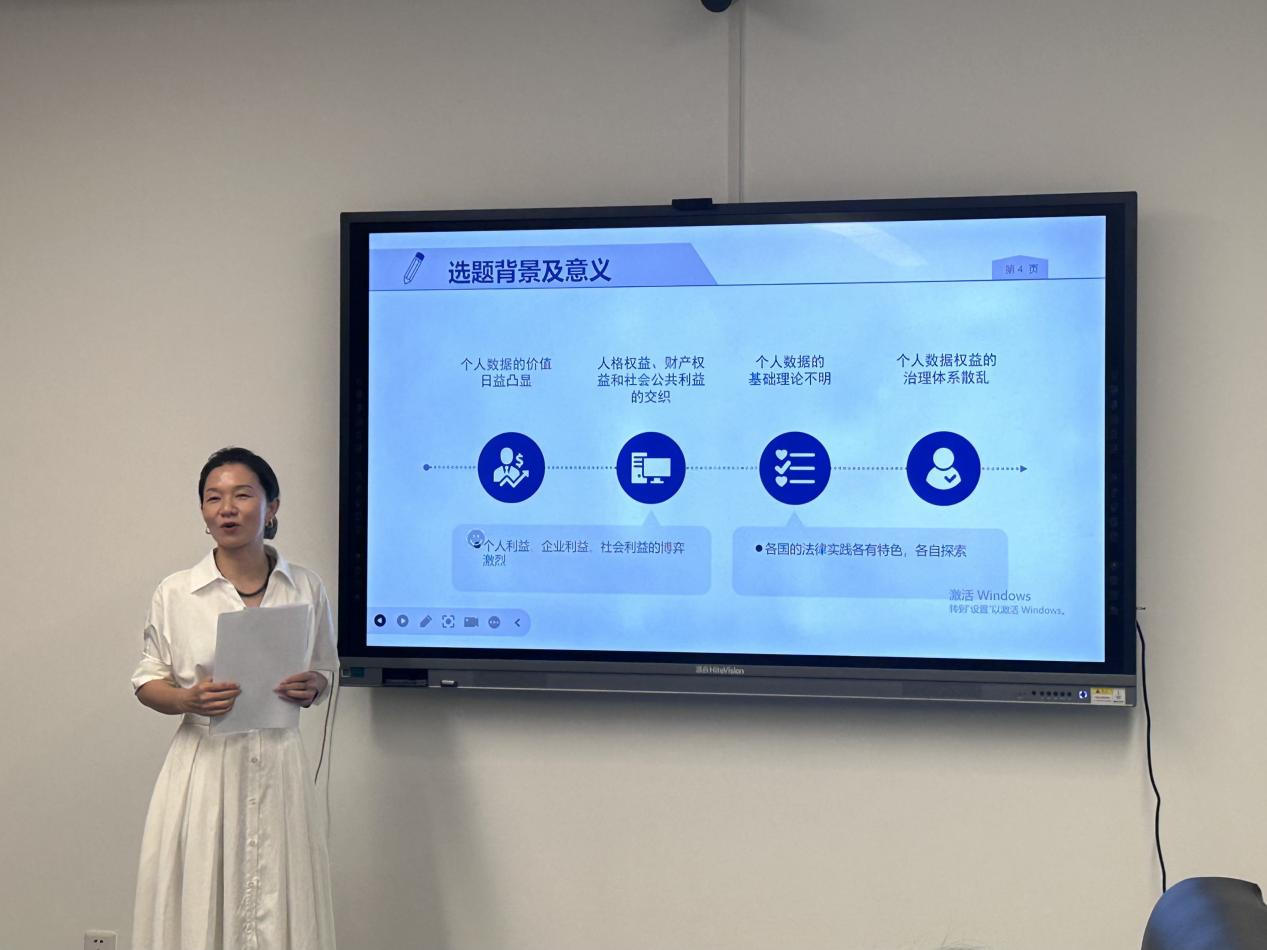 孙艳蕾以《个人数据权益保护体系化构建研究》为题,探讨数据经济背景下个人数据权益的法律定位与制度构建路径。