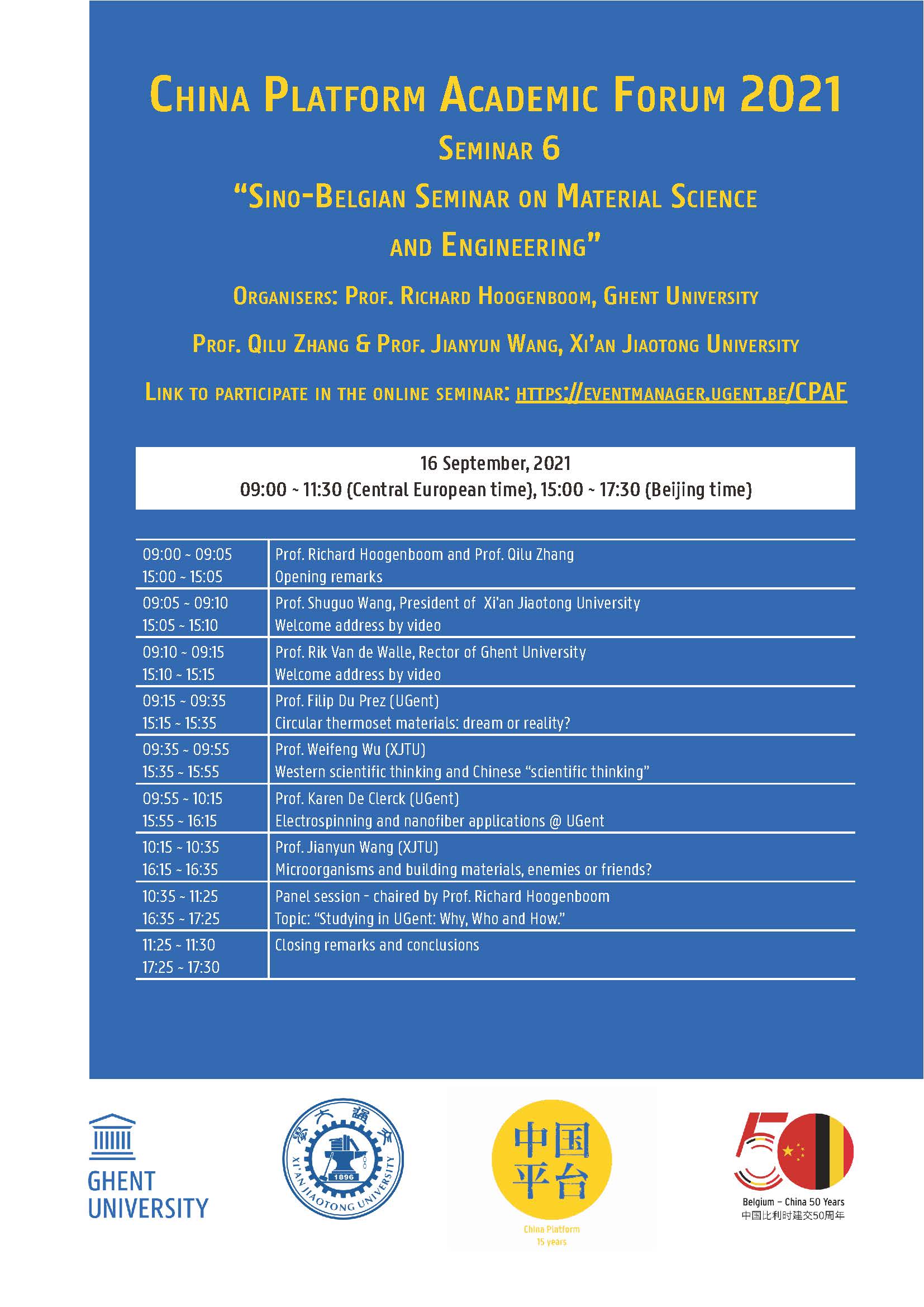 为庆祝中国和比利时建交50周年,根特大学中国平台成立15周年,根特大学中国平台本周将陆续推出第一届中国平台线上活动China Platform Academic Forum 2021,演讲人主要来自根特大学的教授和中国校友,主题涉及不同的科研领域。