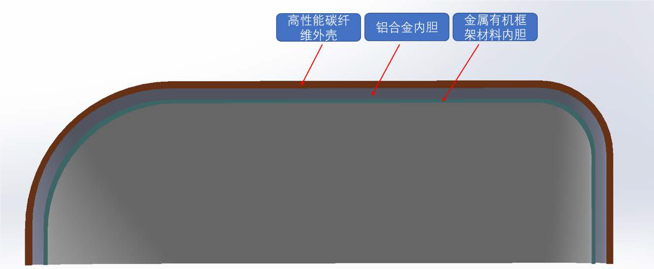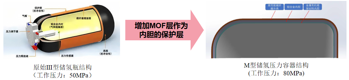 (图3:通过MOF层作为内胆保护层,提高了Ⅲ型储罐的安全工作压力)