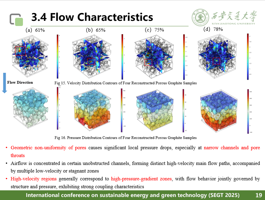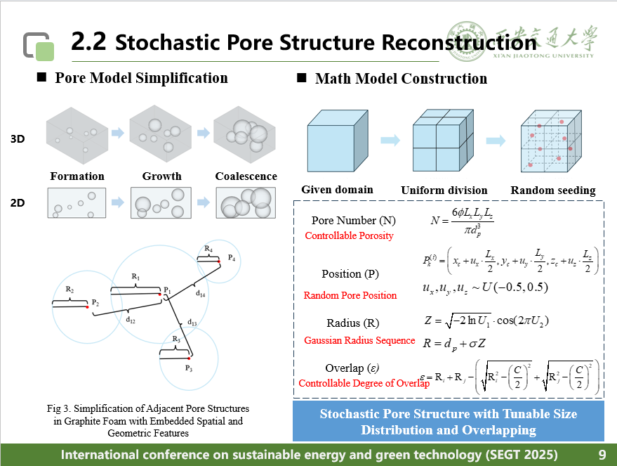 此外,团队成员杨佳成同学还作关于”Numerical study on the thermal properties of graphite foam based on stochastic pore structure reconstruction“主题的研究汇报,阐述了多孔石墨随机孔隙结构数字重构算法及其孔隙结构对热物性能的影响,旨在为多孔石墨基散热器的强化传热构型设计提供参考。