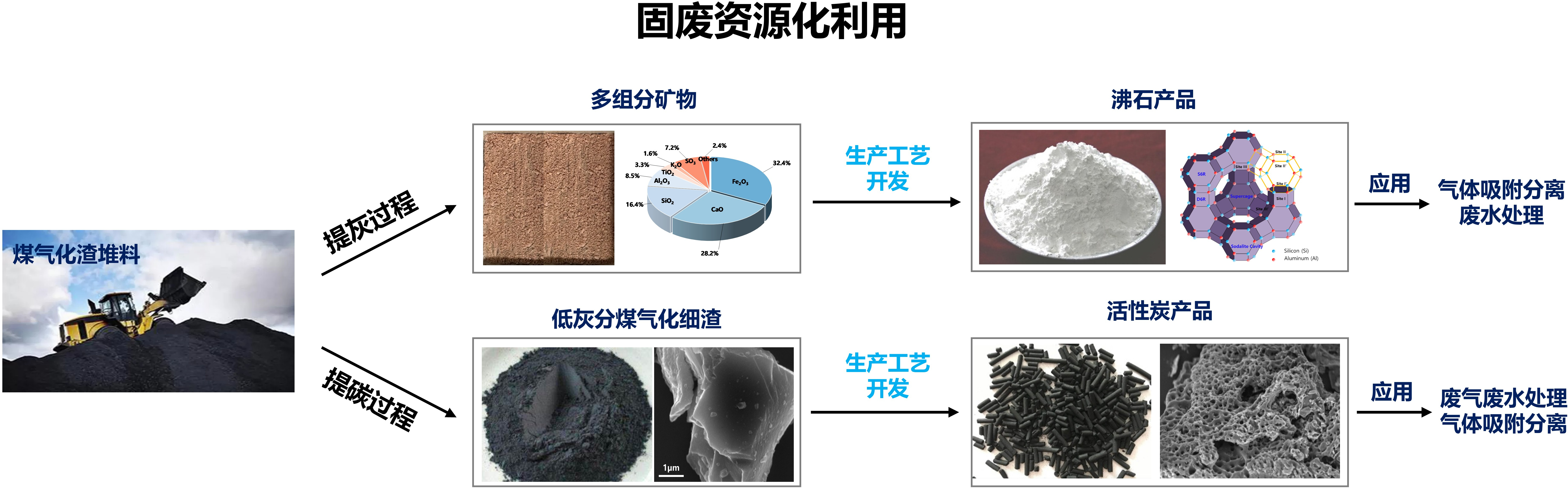 煤气化渣是煤在气化炉中气化后产生的固体废弃物,我国年产量达4000-5000万吨。实现其规模化消纳与高值化利用是当前面临的关键挑战。对此,课题组聚焦煤气化渣的资源化利用,开展了制备沸石及活性炭产品等研究。