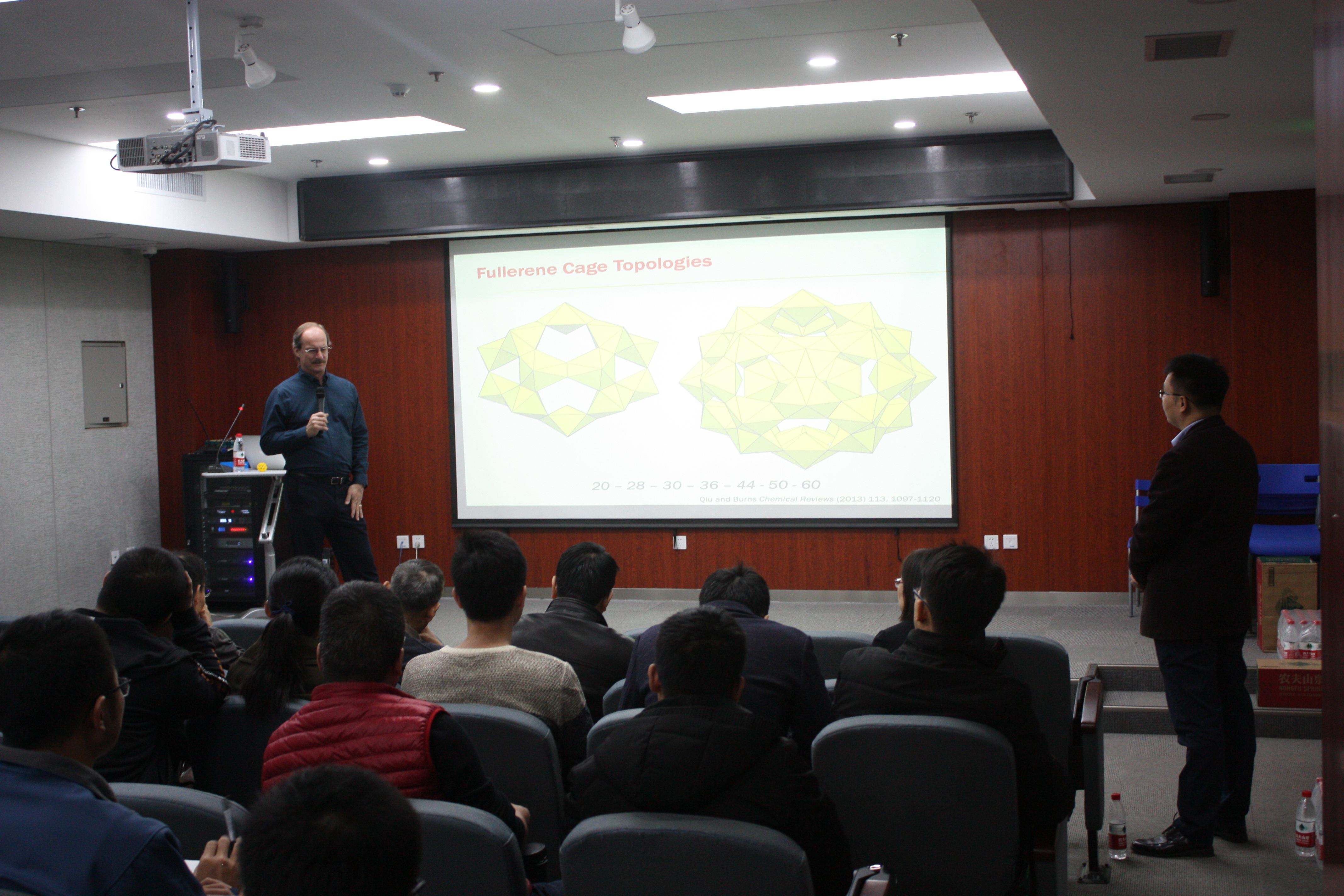 应邱杰教授的邀请,美国圣母大学Peter C. Burns教授于11月13日到我校访问并受聘成为我校的名誉教授。13日上午,Burns教授在北二楼大厅会议室做了题为“Captivation with encapsulation: A dozen years of exploring nanoscale uranyl peroxide cages”的精彩报告。他通过丰富的实验数据、多种生动形象的动画详细地介绍了他的团队近十几年来关于铀过氧簇合物的研究,并阐述了铀过氧簇合物在铀矿提取及乏燃料后处理中的重要应用价值。