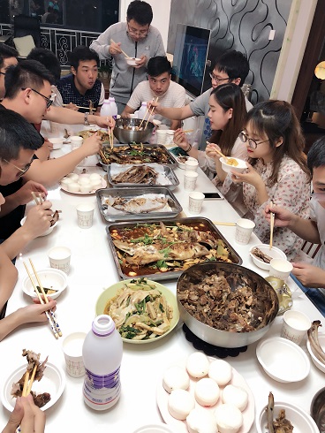 9月7日,本团队举行新学期聚餐,由周老师、张老师亲自下厨,制作酱龙骨、酱味烤鱼、麻辣烤鱼、烤排骨、蘑菇鸡汤面等,迎接新学期的到来。