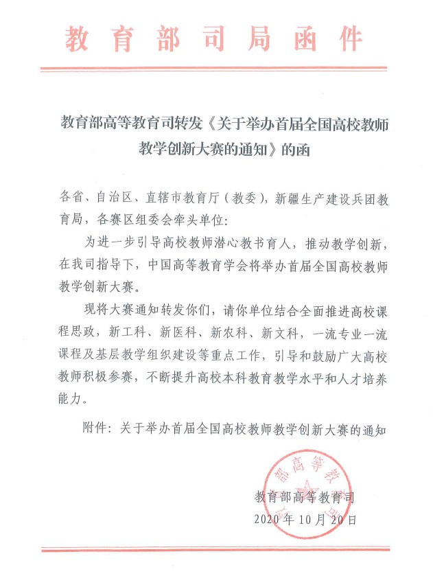 为深入学习贯彻全国教育大会精神和《中国教育现代化2035》,全面落实新时代全国高等学校本科教育工作会议精神,坚持立德树人根本任务,落实“以本为本、四个回归”的要求,以“新工科、新农科、新医科、新文科”建设理念为引领,聚焦教学创新、掀起学习革命,引导高校教师潜心教书育人,形成卓越教学的价值追求和自觉行动,打造高校教学改革的风向标,全力推进高等教育“质量革命”,中国高等教育学会将举办首届全国高校教师教学创新大赛。