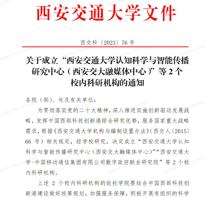 - 祝贺 西安交通大学认知科学与智能传播研究中心成功获批
