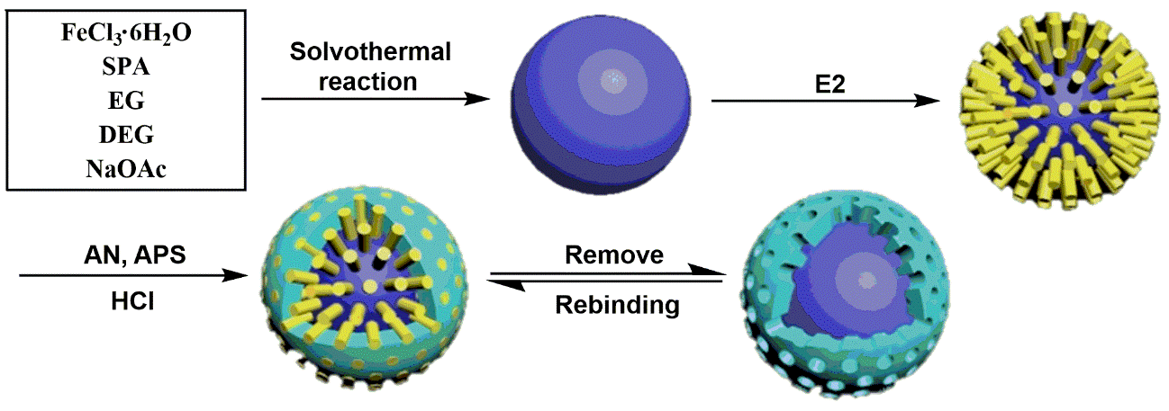 该工作采用羧基功能化的磁性纳米球为载体,雌二醇为模板分子,苯胺为功能单体,制得核-壳式雌二醇磁性分子印迹聚合物。所得材料具有良好的选择性吸附能力,对环境水中雌二醇的准确检测展现出潜在的应用价值。