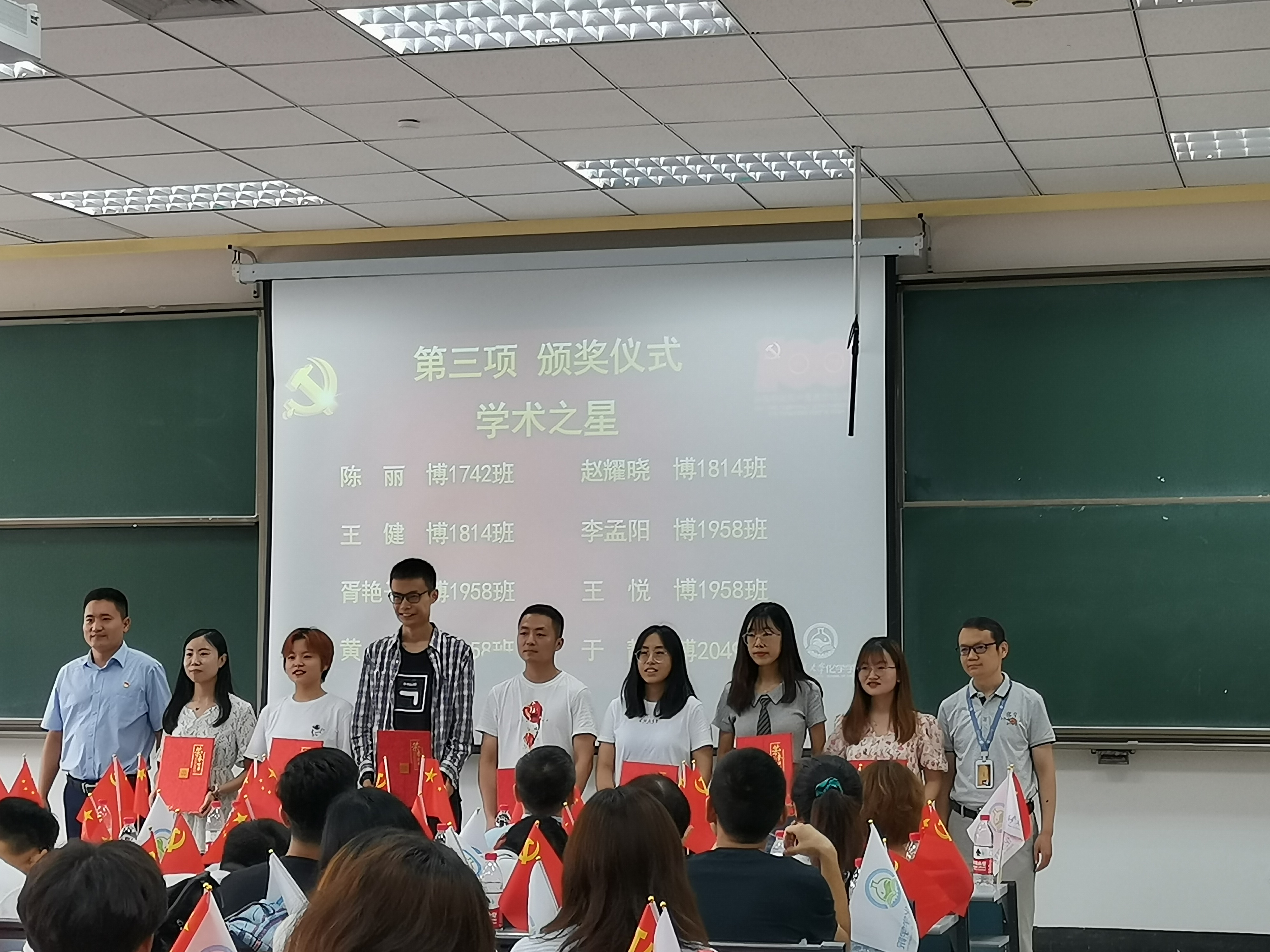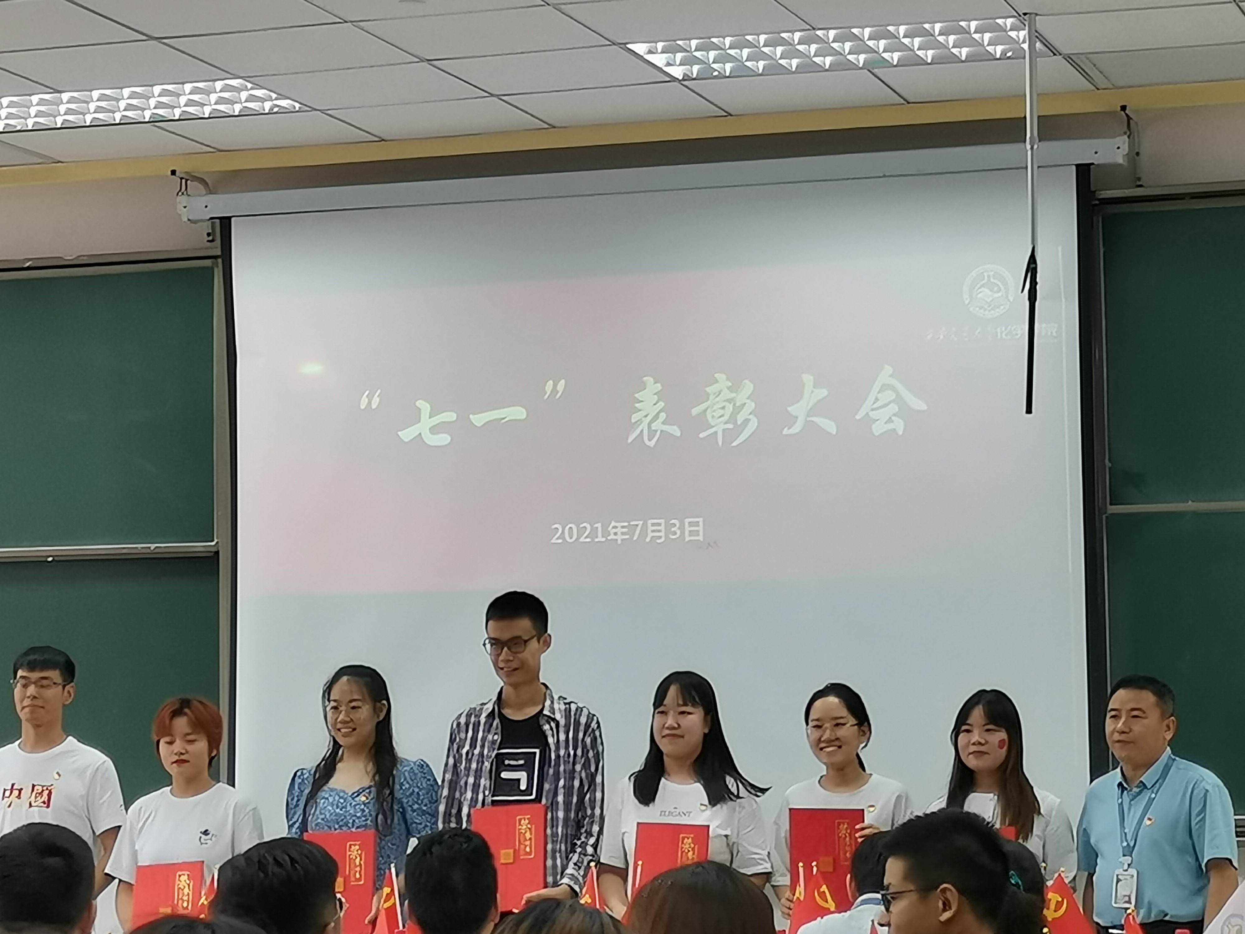 一世纪风雨兼程,九万里风鹏正举。7月3日下午,中国共产党成立100周年之际,化学学院在兴庆校区C404教室,召开“两优一先”表彰大会。学院党委书记张志成、学院党委委员、支部书记、党员、教师、学生等参加本次会议。学院院长、党委副书记丁书江主持。时代造就英雄,伟大来自平凡。学院对59人次教职工、85人次学生进行优秀共产党员、优秀党务工作者及先进党支部、教学科研表现突出人员、在学院成立一周年涌现出的杰出代表进行表彰。