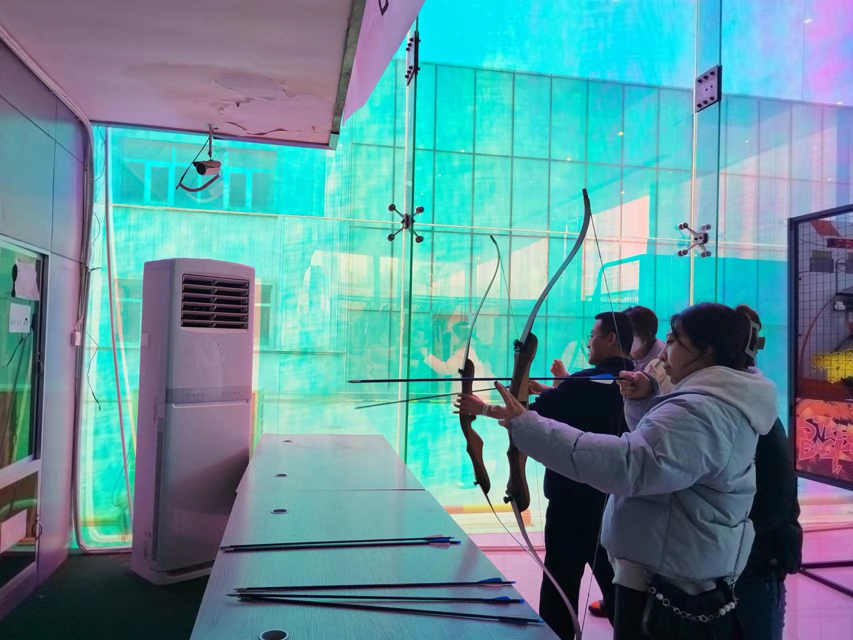 课题组的小伙伴们在这里蹦床、射箭、碰碰车、滑旱冰,玩的不亦乐乎,这些好玩有趣的项目不仅使小伙伴们放松了心情,而且加深了友谊。