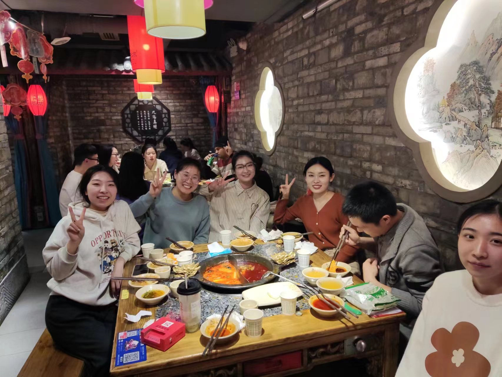 傍晚,大家齐聚火锅店。课题组的小伙伴们围坐在一起,一边吃着热气腾腾的火锅,一遍畅谈着身边趣事,一片片温暖、一口口美味才下舌尖,又上心间,气氛好不融洽。