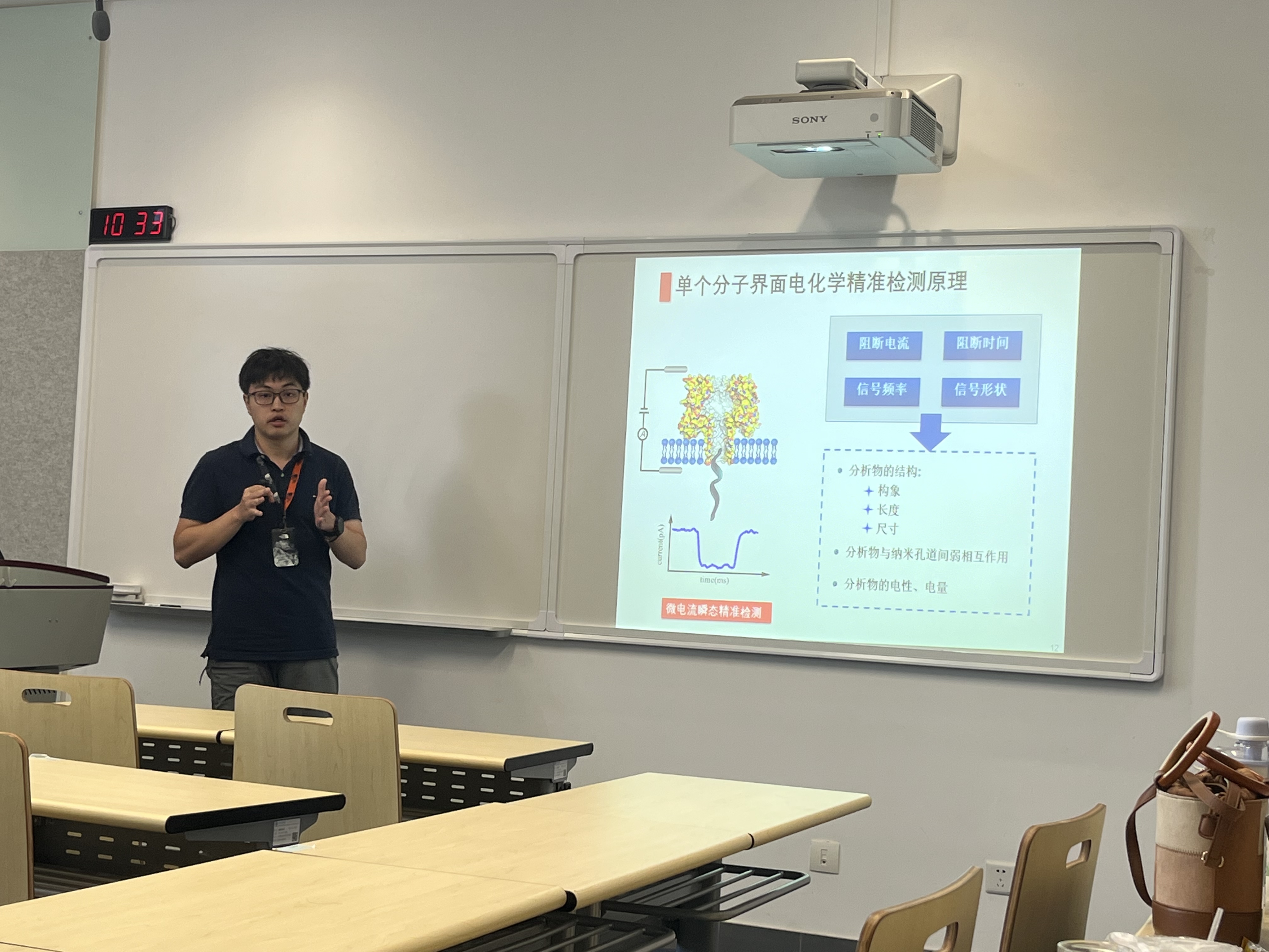 高瑞特聘研究员深入介绍了他在纳米电分析、扫描电化学池显微镜等方向的研究原理、研究进展及研究成果,在场师生认真聆听并踊跃提问交流。