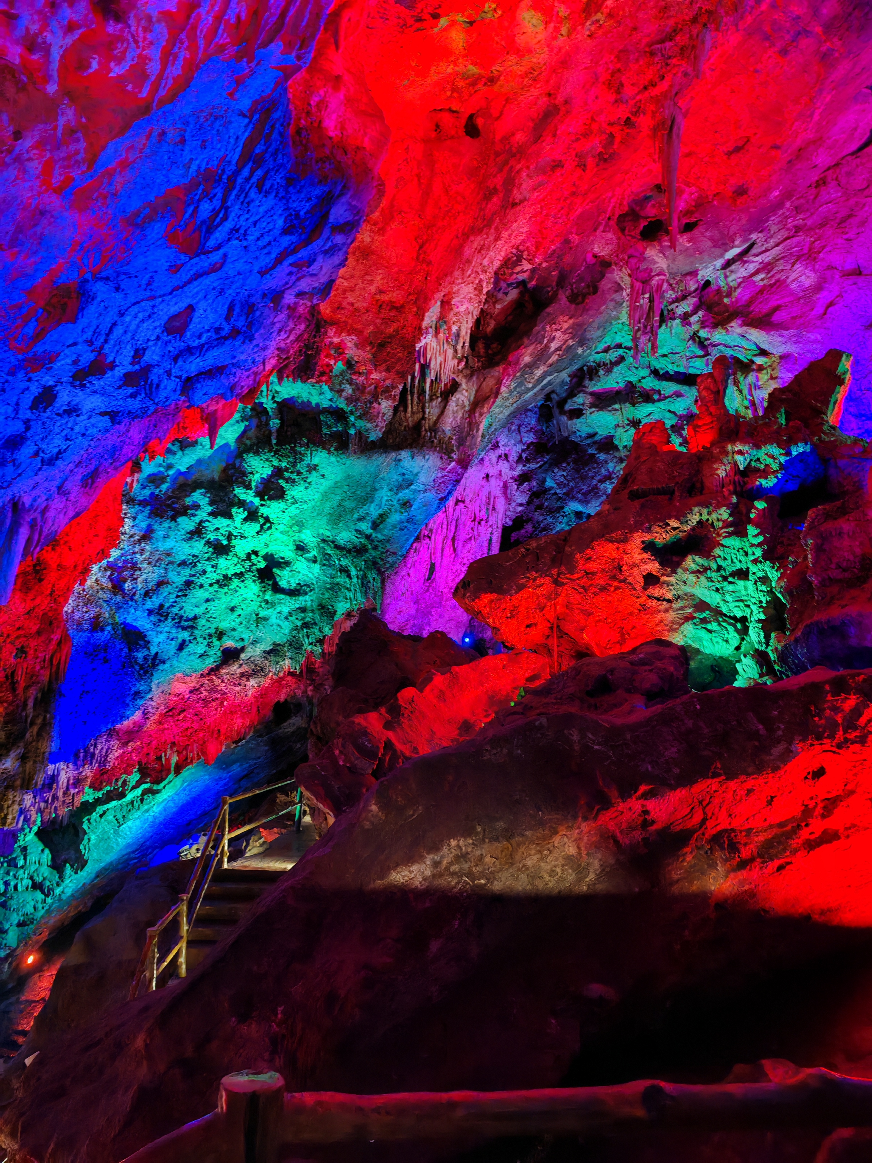 最后,我们走进了神秘的自然景观溶洞。溶洞内,形态各异的钟乳石在灯光的映照下,如梦如幻。有的如瀑布般垂落,有的似仙女下凡,有的仿若巨龙盘旋。我们被大自然的鬼斧神工所震撼,不禁感叹其神奇与美妙。