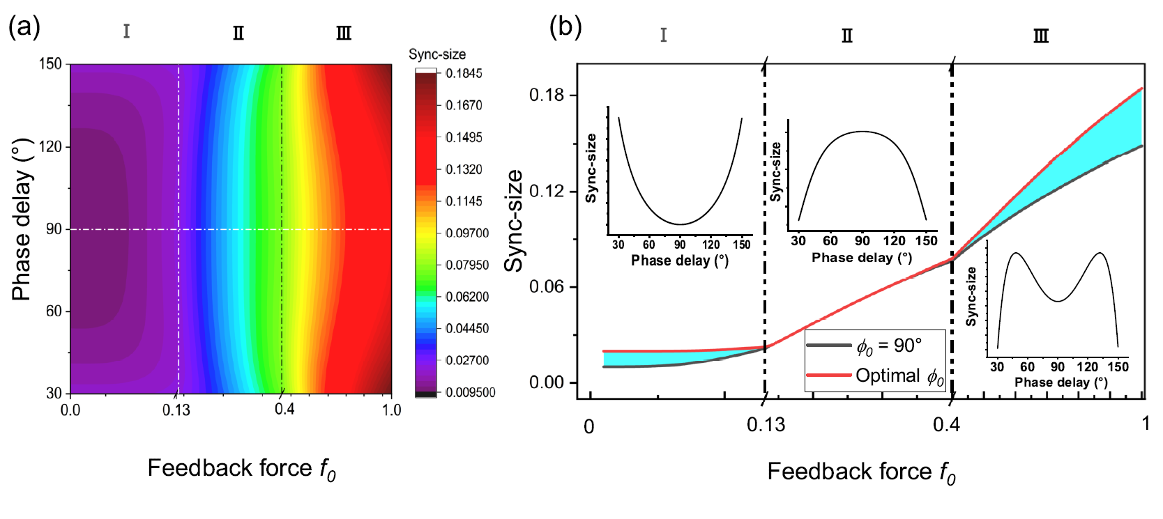 基于此,西安交通大学韦学勇教授课题组和浙江大学宦荣华教授课题组合作研究,解释了在非线性振荡器中相位延迟对同步带宽和频率稳定性的影响,相关成果发表在《Nonlinear Dynamics》期刊上。研究人员通过改变振荡系统中反馈力的强度与相位延迟,得到不同反馈强度小同步带宽随相位延迟的变化关系。实验发现,在不同的系统参数下,如非线性强度,品质因子和反馈强度,同步带宽的大小随相位延迟的变化形式分别呈现‘U’型,‘Anti-U’型和‘M’型的变化关系;通过反馈强度与相位延迟的联合调控,能够实现同步带宽最大与频率稳定性最优。该研究揭示了非线性振荡器的同步带宽与频率稳定性在不同的系统参数下受相位延迟调控的变化形式,为探索同步现象的实际应用提供了理论支撑。