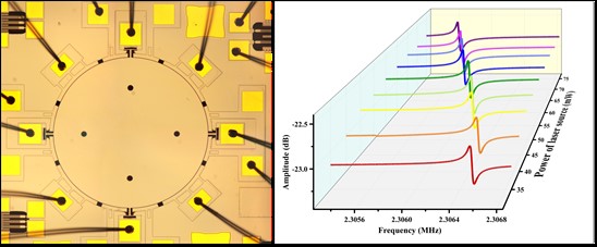 基于目前光功率探测器存在的问题,西安交通大学韦学勇教授课题组研究了一种基于单晶硅盘式谐振器的新型光功率传感器。该光功率传感器利用单晶硅在激光辐照下温度变化引起的谐振器频率偏移进行激光功率的检测。通过仿真和实验,验证了盘式谐振器的谐振频率对其吸收热量具有超高的灵敏度。在不同波长的激光照射下,盘式谐振器不同模态的振动频率都会发生偏移,并且显示出不同的热吸收效率。闭环实验结果显示,对于488 nm的激光信号盘式谐振器光功率传感器的分辨率可以达到78 nW,并具有高线性度。