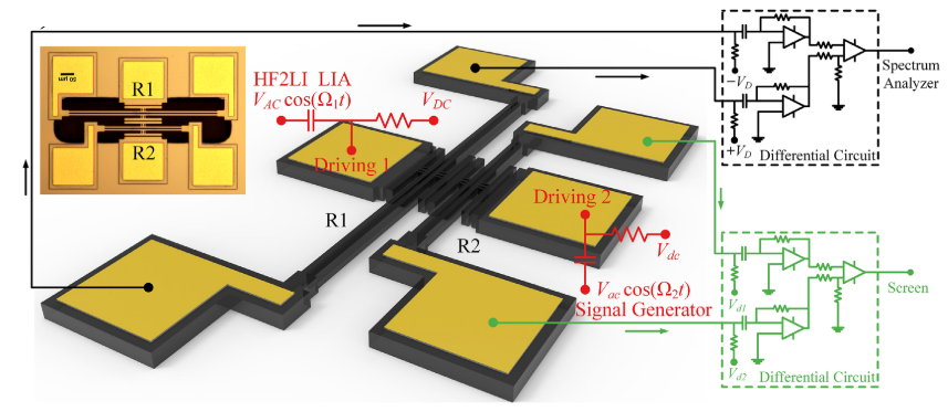 动力学响应是微谐振器功能设计及性能表现的基础。由于微尺度效应,微谐振器极易出现非线性特征,同时很多在宏观尺度中被忽略的热机械、热电等噪声的影响变得更加显著。非线性和噪声使微谐振器的响应变得非常复杂,也为谐振式微传感器带来了灵敏度和分辨率下降等不利因素。以往通常采用削弱非线性和屏蔽噪声的方式来改善微谐振器的性能,但是回避非线性会限制其使用范围,噪声屏蔽也很难规避微谐振器内部的固有噪声。非线性和噪声已成为制约微谐振器性能提升的瓶颈。深入理解微谐振器的动力学响应并揭示其规律是突破该瓶颈的必经之路。