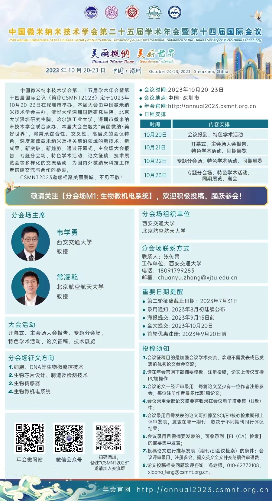 - 敬请关注CSMNT2023【分会场M1:生物微机电系统】