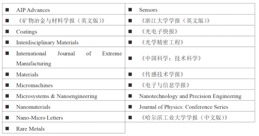 2.会议录用且需发表的论文可推荐至SCI/EI/核心等检索期刊上评审发表,发表在哪一期刊,取决于不同期刊同行评议结果;大会合作期刊目录如下: