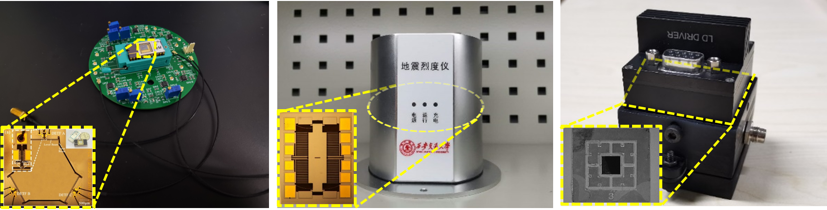 MEMS传感器由于其精度高、体积小、成本低等优点广泛应用于国防、工业及电子消费品领域。本课题组为解决我国对高性能MEMS加速度传感器的需求,重点针对惯性导航、振动监测、地震检波三个应用场合分别研制高精度MEMS加速度传感器和测试样机。还研制了高精度扭矩传感、压力传感器、电荷传感器等核心MEMS敏感芯片。