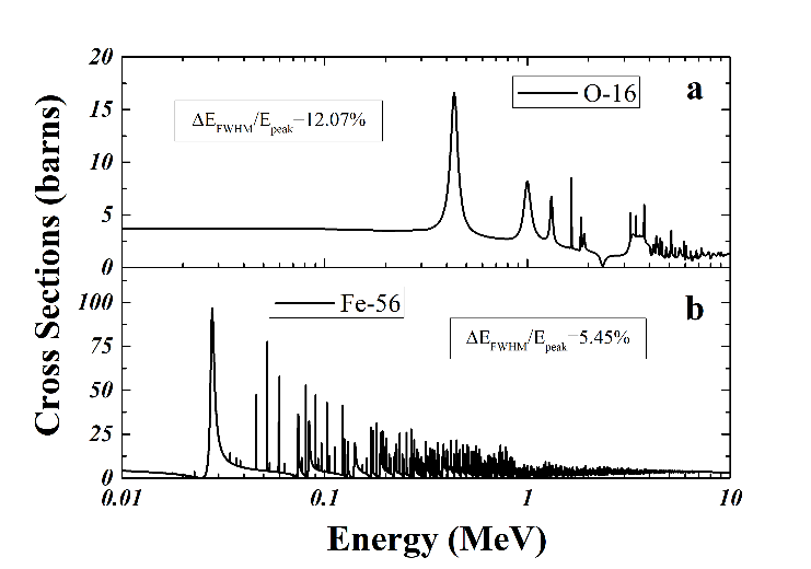 图二、56Fe和16O的中子反应截面(共振峰区域)