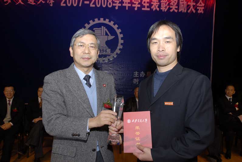 2008年获得“西安交通大学唐文治特别优秀奖学金”,时任校长郑南宁颁奖