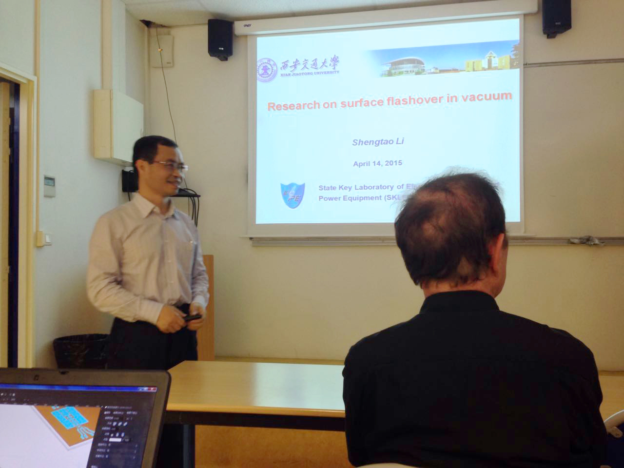 访问期间,李盛涛教授作了题为Researh on Surface Flashover in Vacuum的学术报告,与Gilbert TEYSSDRE教授课题组展开讨论和交流。