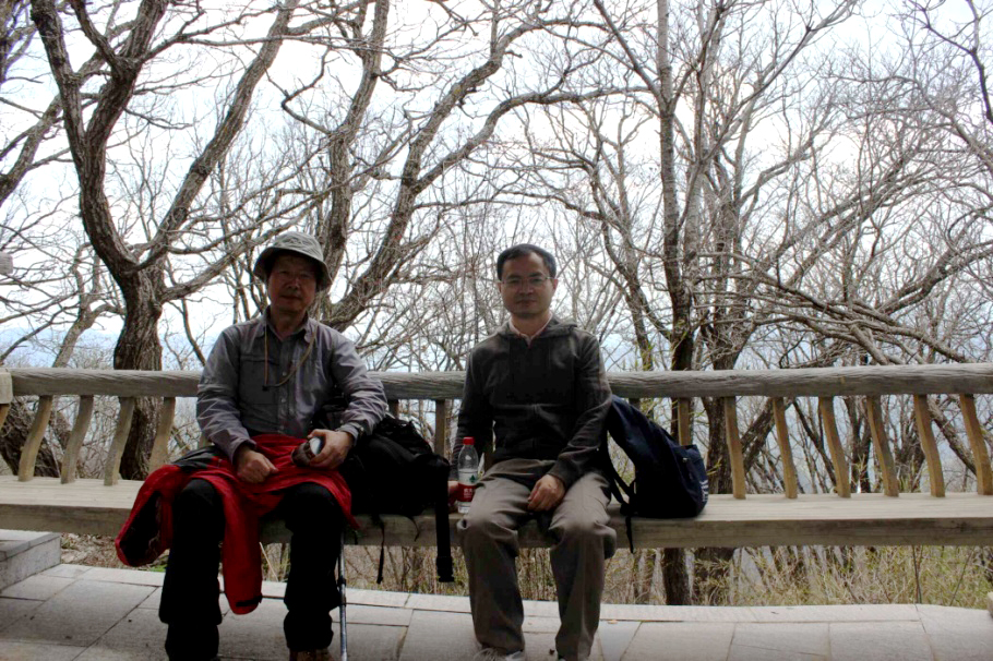 在山上亭间休憩的郑晓泉老师和李盛涛老师