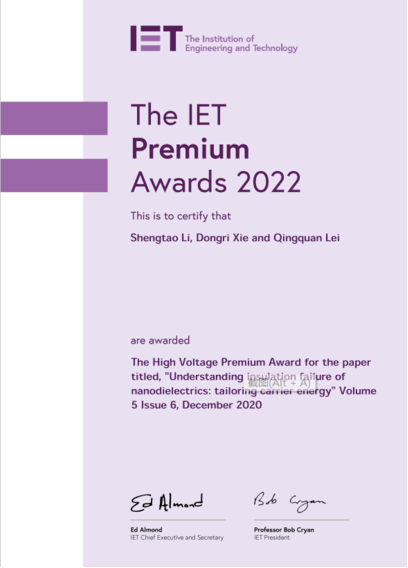 - 热烈祝贺课题组High Voltage论文《Understanding insulation failure of nanodielectrics: tailoring carrier energy》
