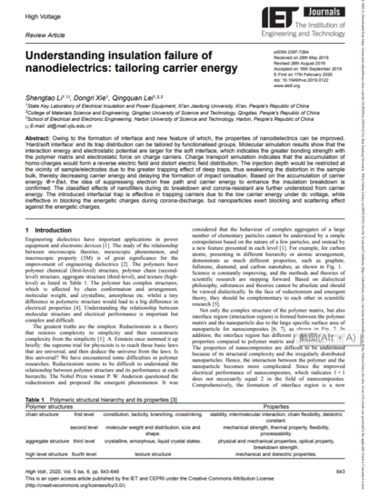 热烈祝贺课题组High Voltage论文《Understanding insulation failure of nanodielectrics: tailoring carrier energy》