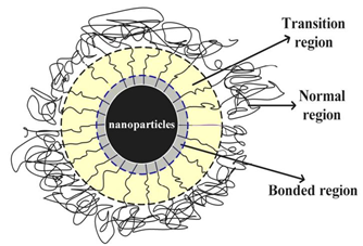 图左:纳米电介质交互区模型 图右:电子跳跃散射模型