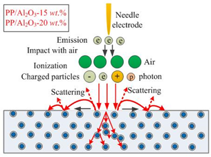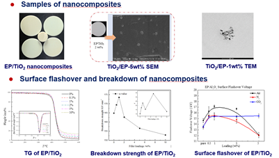 图左:沿面闪络模型示意图 图右:环氧纳米复合电介质的实验结果